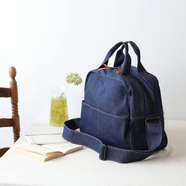 カラーステッチがポイントのボストンバッグを作りました。