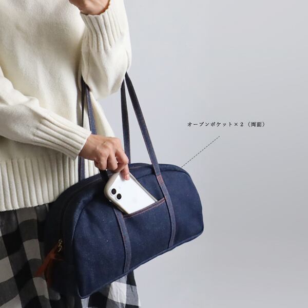 華奢で長めのハンドルは肩に掛けたまま荷物の出し入れがスムーズにでき、