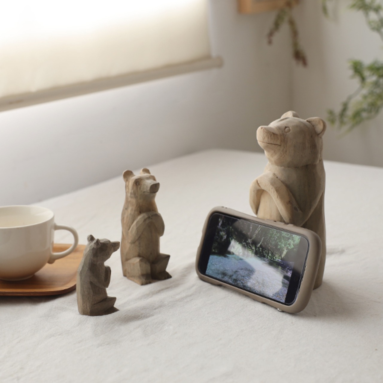 3体セット 天然無垢ウッド 木彫り お願い くまさん 熊 クマ インテリア 置物 W84A