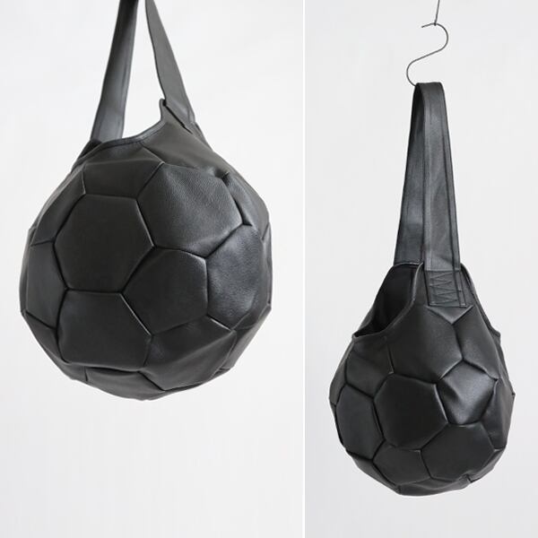 (送料無料) 新作 Mサイズ 上質シュリンクPUレザー サッカー ボール バッグ ショルダー 肩掛け ブラック P88