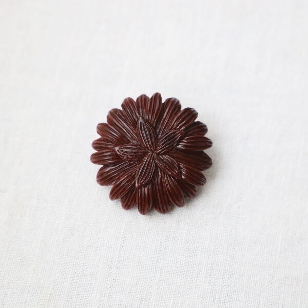 新作 手彫り ウッド ブローチ ウッドカービング 天然木 花 モチーフ ダークブラウン Q14A