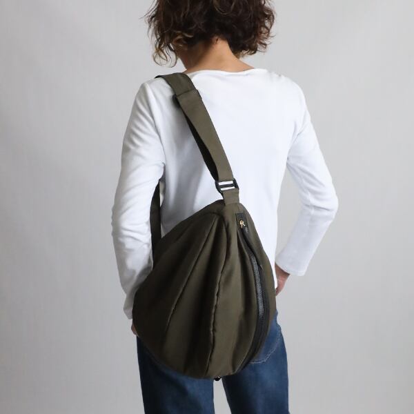 軽量 まぁるいボール ボディバッグ クッション入り ナイロン 革レザー ショルダー斜め掛け 紐調節可 カーキブラウンZ01C