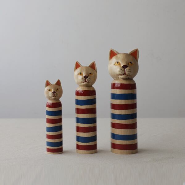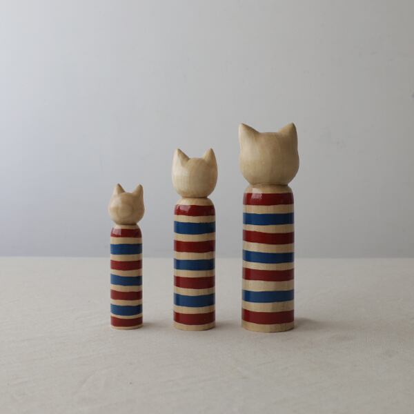 【 創作 こけし ねこけし 縞々模様 猫一家 3匹セット 】