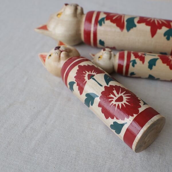 【 創作 こけし ねこけし 花模様 猫一家 3匹セット 】