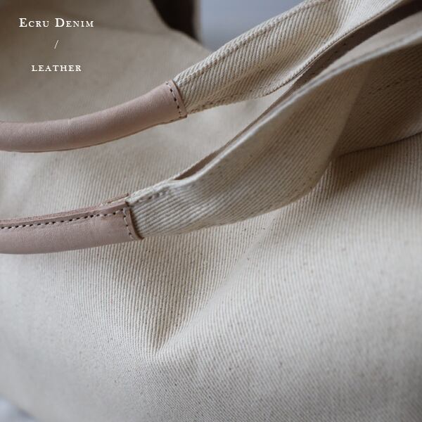 (送料無料)最終SALE 厚地 生成り デニム 牛革レザー 2way トートバッグ 裏地付き 鞄 A4サイズ P10A