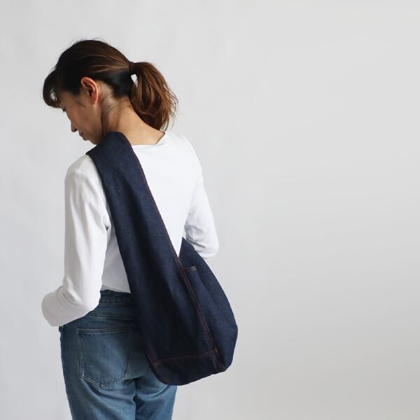 (送料無料) 厚地デニム クッション入り カラーステッチ くったり ななめがけ ショルダーバッグ鞄 P22