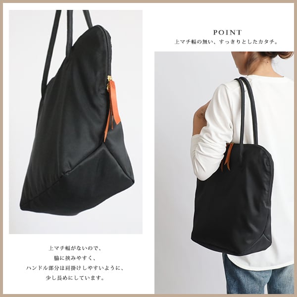 ハンドル部分は肩掛けしやすいように、少し長めにしています。