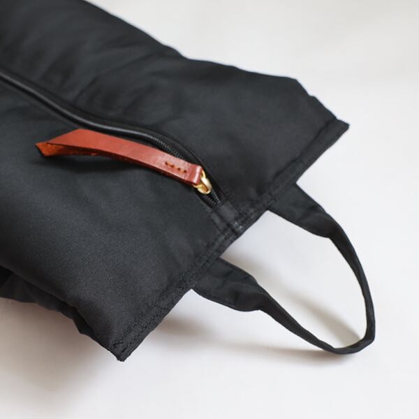 あえて外面に付けられたファスナーがポイント。