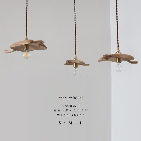 「 天然木のペンダントライトシェード モモンガ /Mサイズ」