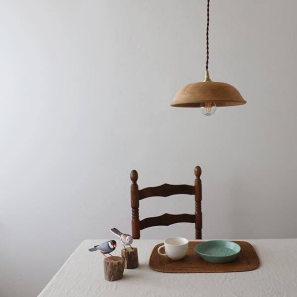 「 天然木のペンダントライトシェード /ボウル型 縁あり」