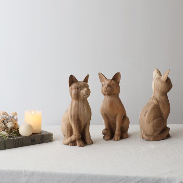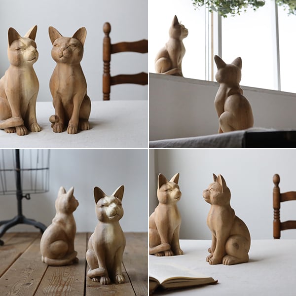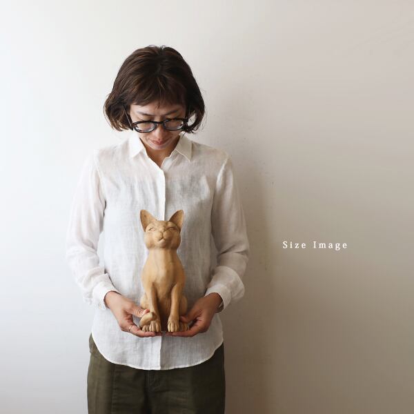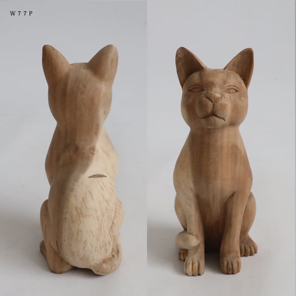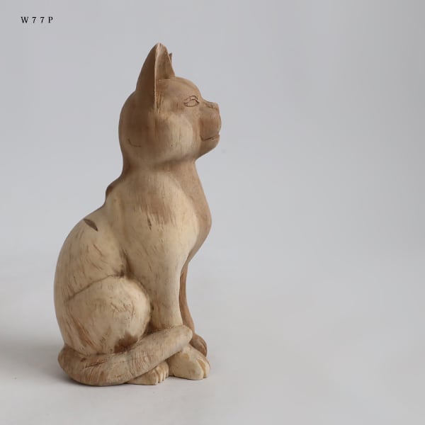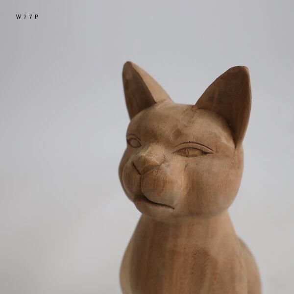 (送料無料)飼い主募集 天然無垢ウッド 手彫り 木彫りART 座る猫 ネコ置物 インテリア オブジェ クリスマスW77P